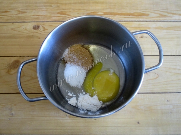 Для крема перемешайте яйцо, сахар ванильный, демерару и муку.