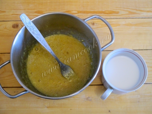Затем доведите эту массу при помешивании до "бульков" и варите на среднем огне до загустения.