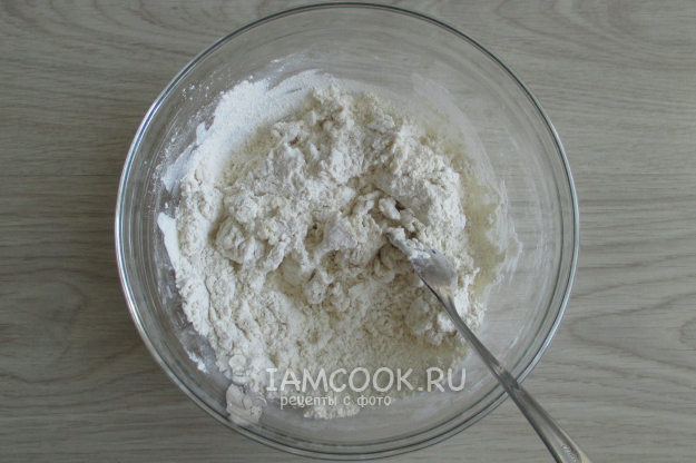 Для теста соедините муку с солью, сахаром и сухими дрожжами. У меня используются дрожжи, предназначенные для смешивания с мукой.