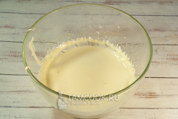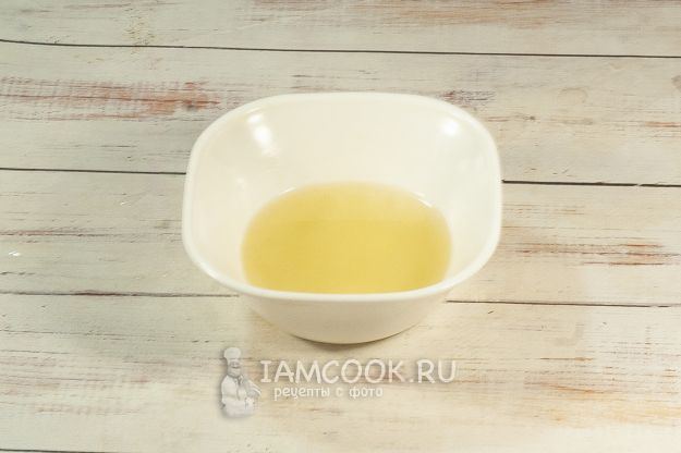 Желатин зальем холодной водой. Растопим на паровой бане. Охладим. Следим, чтобы желатин не потерял текучесть.