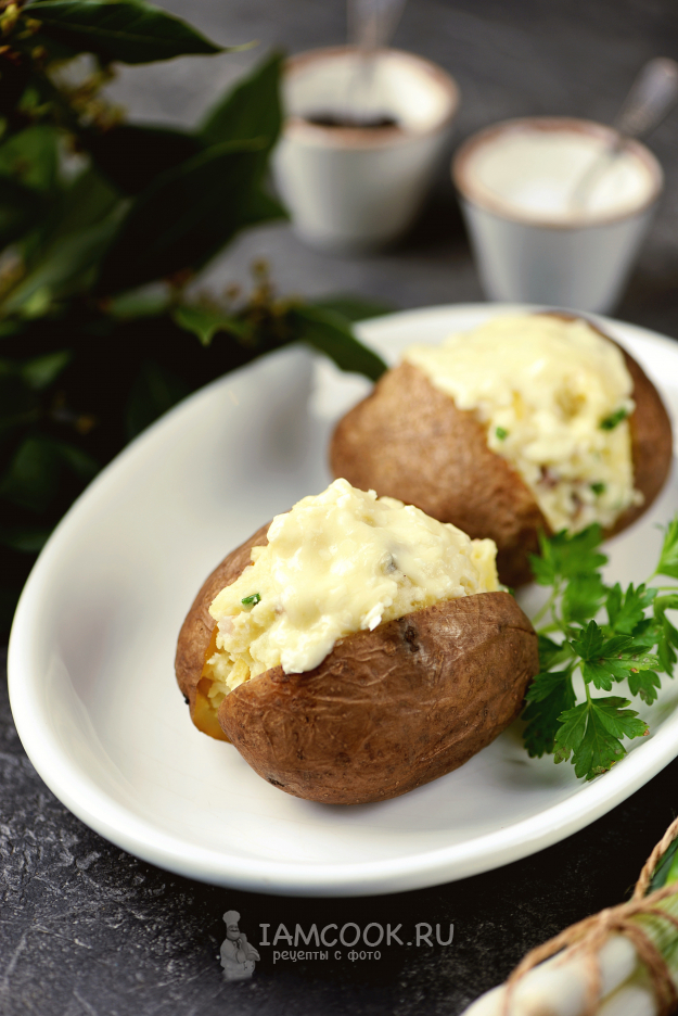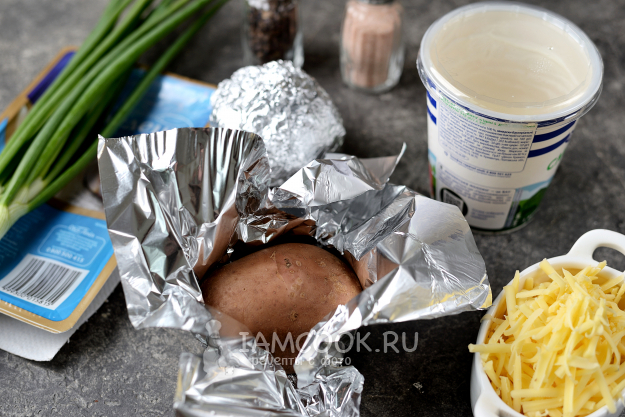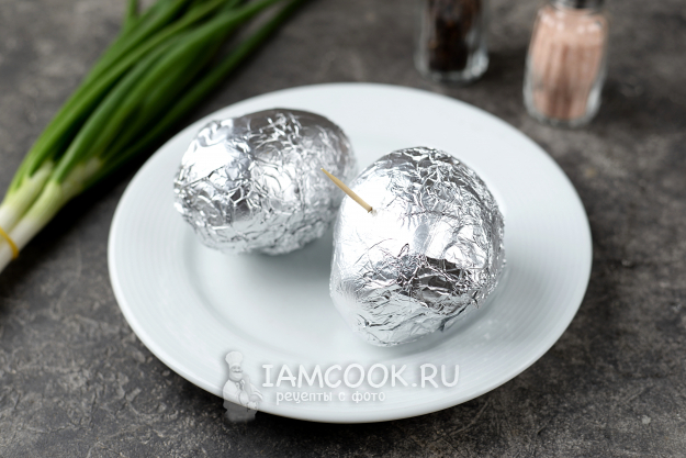 Каждую картофелину плотно замотайте в пищевую фольгу, отправьте в предварительно разогретую до 220 градусов духовку на 30 минут.