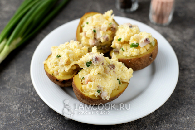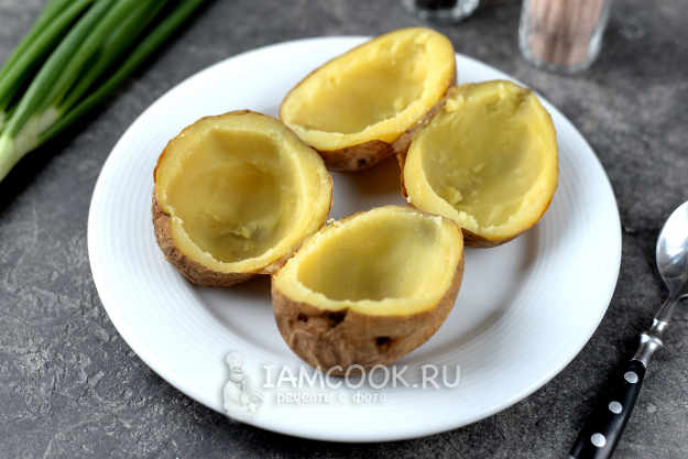 Надрежьте картошку пополам, выскоблите середину чайной ложкой.
