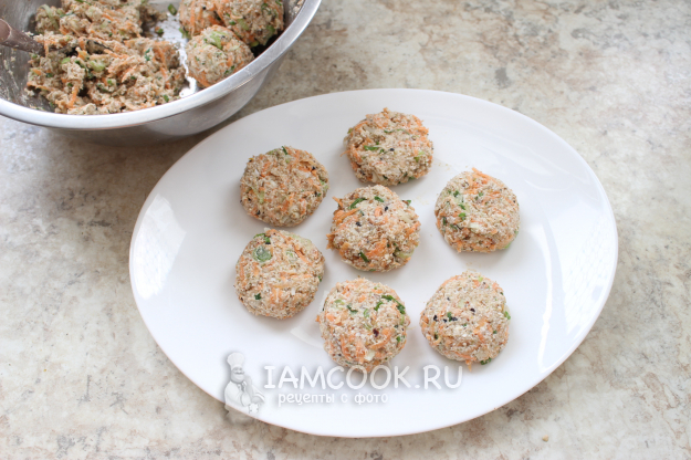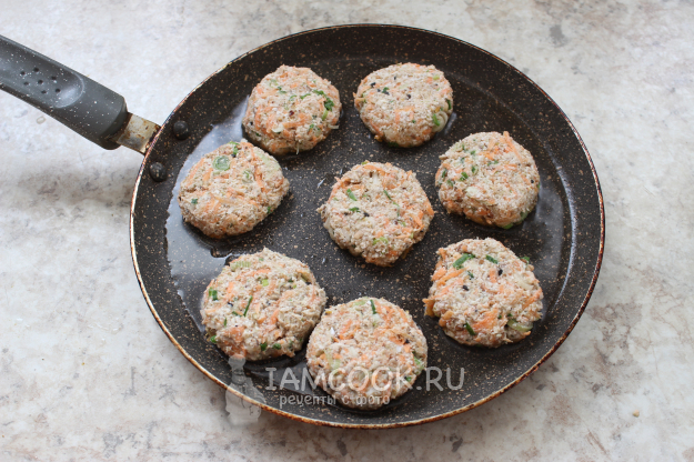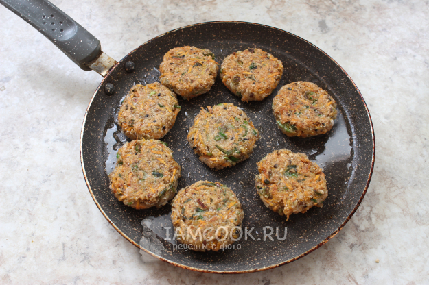 Разогреваем сковороду с кокосовым малом (или любое растительное масло без запаха). Обжариваем котлеты с двух сторон на среднем огне под крышкой.