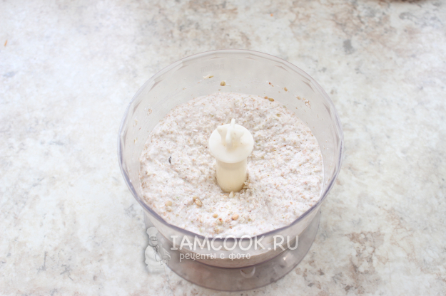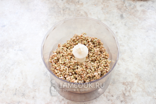 Измельчаем гречку в блендере в пюре. Получится густая масса, похожая на творог.