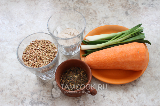 Подготовим ингредиенты для вегетарианских котлет из зеленой гречки (без яиц!).