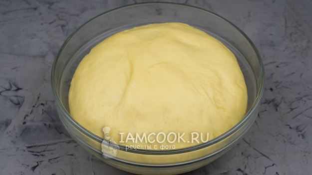 Замесим мягкое, не прилипающее к пальцам тесто, округлим его в миске и поставим в теплое место, накрыв кухонным полотенцем, подходить на час.