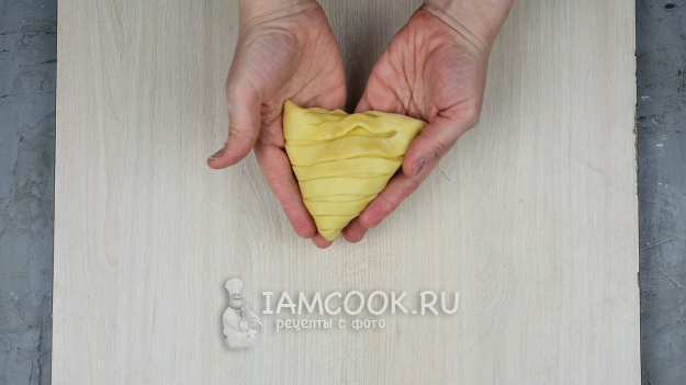 Каждую часть раскатаем в тонкий пласт, по форме близкий к прямоугольнику.