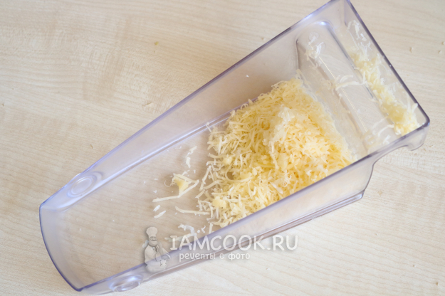 Для вкусной шапочки натираем на мелкой тёрке сыр и чеснок.