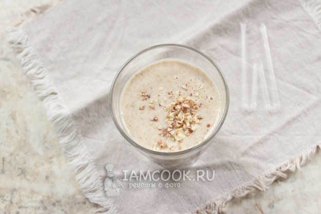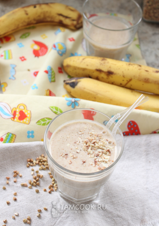 Подаем питьевой смузи из зеленой гречки с бананом сразу.