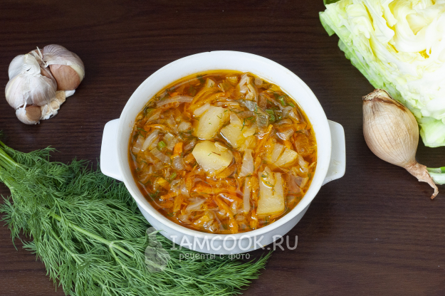 Вегетарианские щи из свежей капусты готовы. Приятного аппетита!
