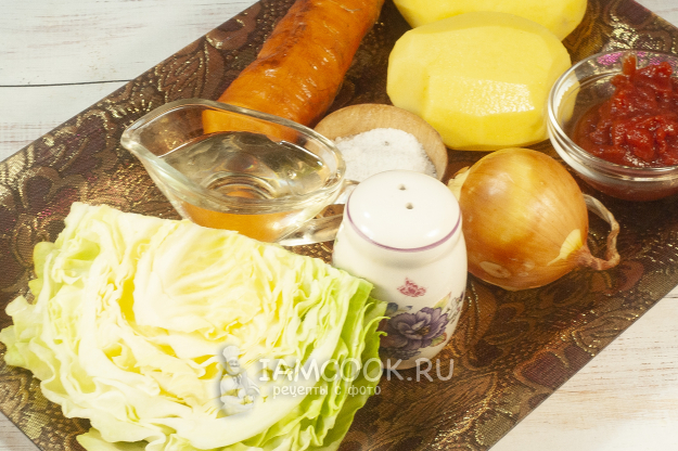 Подготовим ингредиенты для вегетарианских щей из свежей капусты. Капусту мы используем белокочанную свежую — нового урожая. Сварится она быстро.