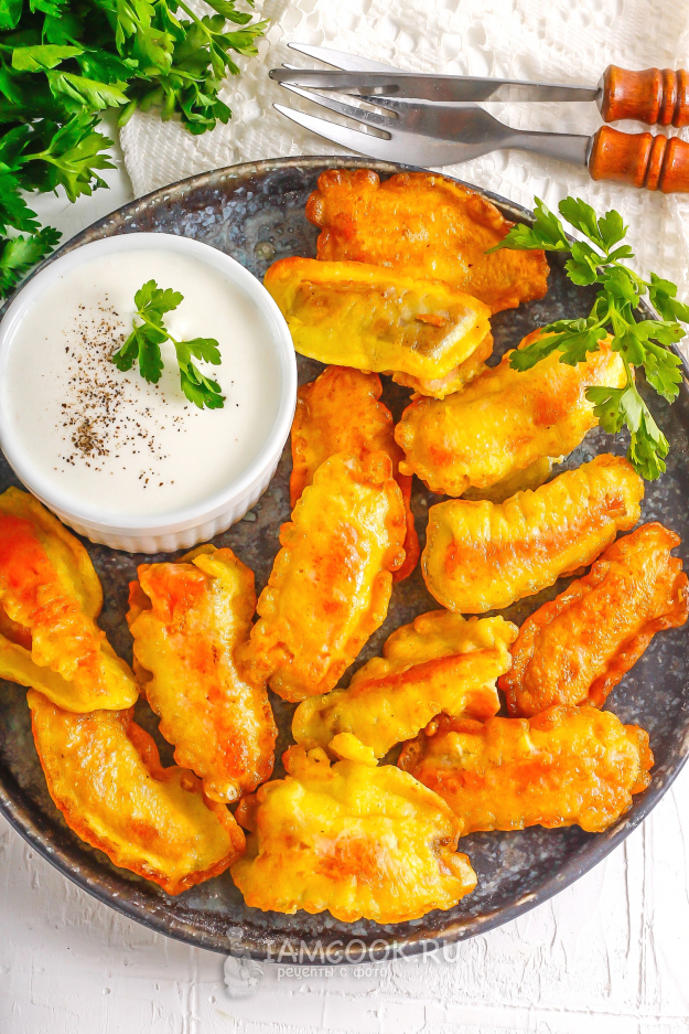 Выложите румяное блюдо на тарелку и подайте к столу с любым выбранным соусом, кетчупом и т.д.