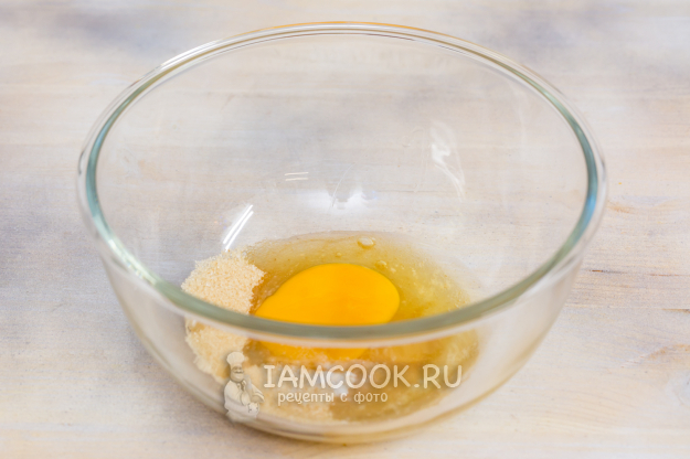 Смешайте соль, сахар, ванилин и яйцо. Чуть взбейте ручным венчиком.