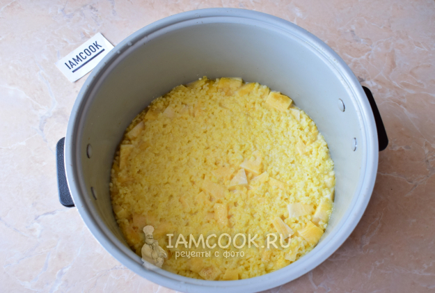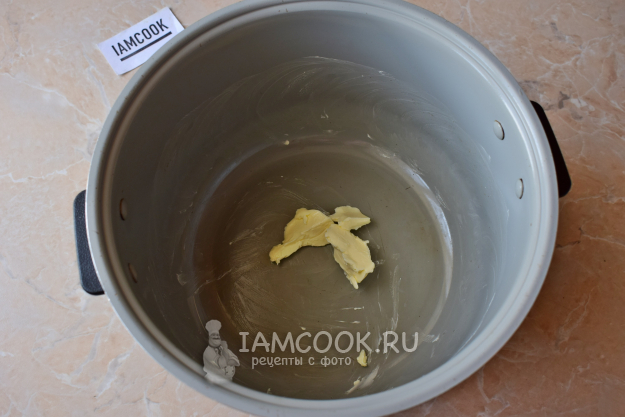 Чашу мультиварки промажьте по бокам и дну кусочком сливочного масла. Оставьте немного масла в чаше.