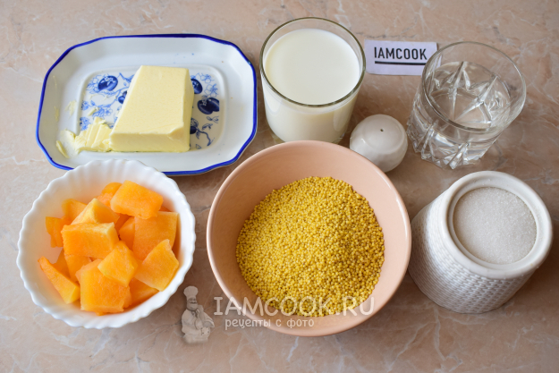 Для приготовления пшенной каши с тыквой в мультиварке-скороварке необходимы следующие продукты. Молоко берите малой жирности (1-3%), иначе оно будет выкипать из мультиварки. При выборе пшена потрясите упаковку и внимательно её рассмотрите. Все зернышки должны быть равномерно желтого цвета, без посторонних примесей. Тыкву очистите, а мякоть нарежьте на кусочки.