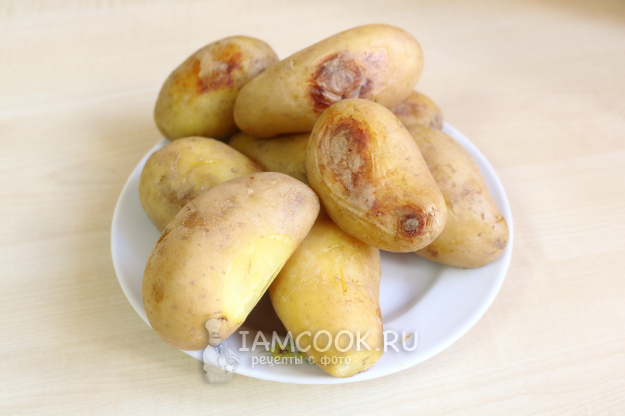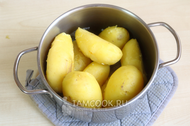 На данном этапе вам точно вспомнится игра «горячая картошка». Аккуратно очистите горячий картофель от кожуры. Она полезная, поэтому не обязательно счищать всё, можно специально оставлять немного кожуры на плодах.