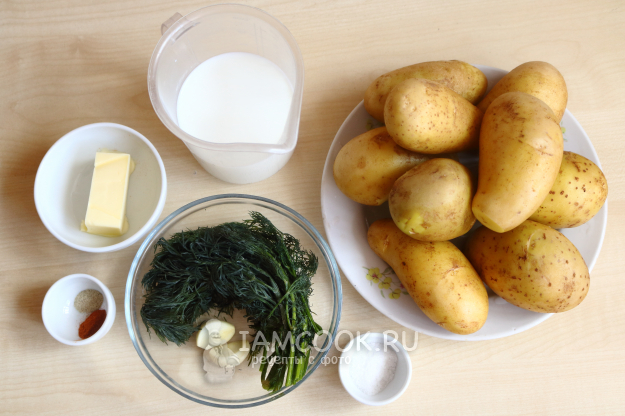 Для приготовления пюре из запеченного картофеля выбирайте хорошие клубни, желательно с тонкой кожурой (её можно будет вообще не удалять), без пятен и прочих «неисправностей». Готовить пюре будем с молоком - его можно смело заменить на воду или бульон. Помимо специй (соль, перец, паприка), я добавляю в пюре свежий чеснок и укроп. Эти компоненты отлично дополняют картошечку! И сливочное масло, куда без него. Не скупитесь, кладите щедро. Из данного количества ингредиентов получается 3-4 порции пюре. Приступим.