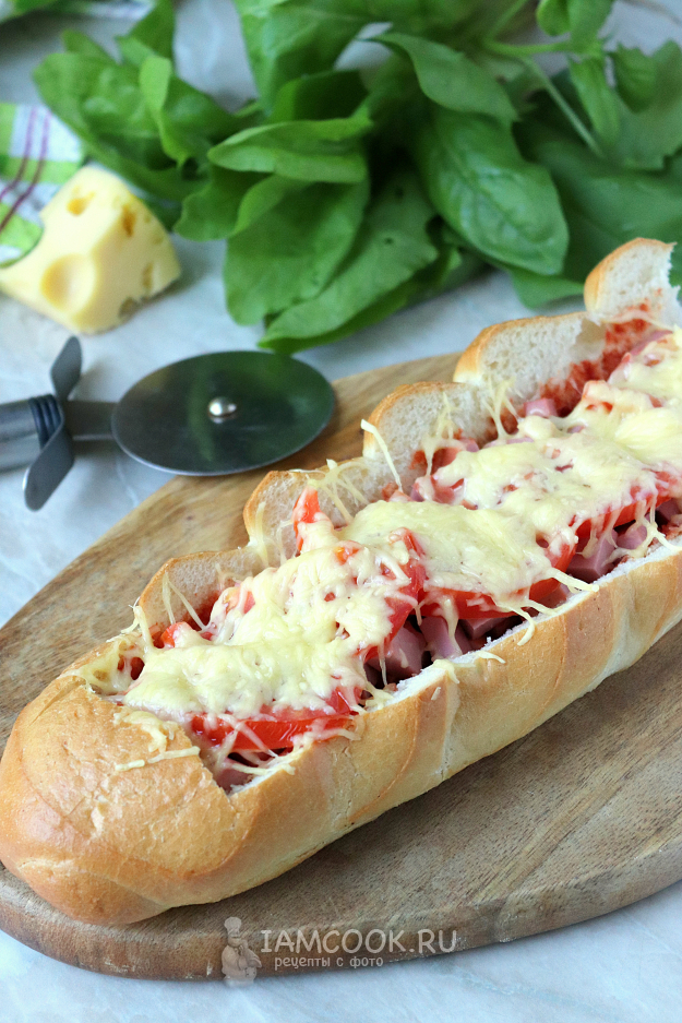 Вот и всё, вкуснейшая пицца-бутерброд готова. На стол подаём в горячем виде.