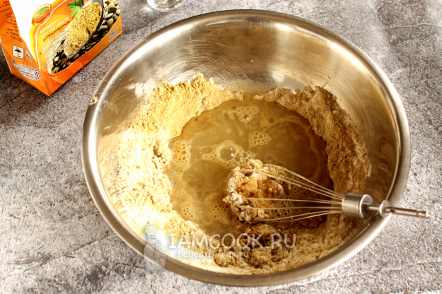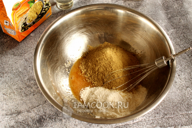 Добавьте муку двух видов — тыквенную и пшеничную.
