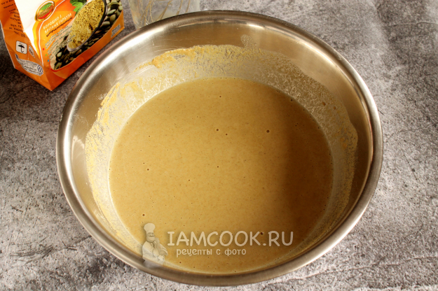 Замесите однородное жидкое тесто для блинов. Оставьте в стороне минут на 20-30.