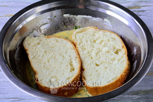 Каждый кусочек батона окуните в кляр с двух сторон.