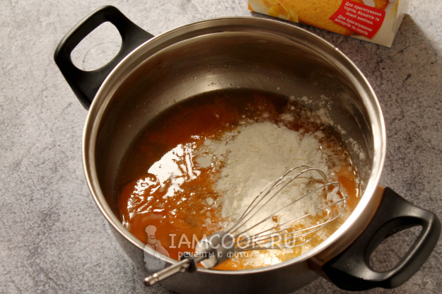 Затем — с кукурузным крахмалом. Удалите комочки.