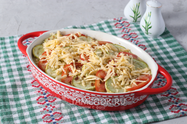 Духовку разогреть до 180 градусов и готовить запеканку из кабачков и помидоров с сыром 20-25 минут, пока верх не зарумянится. Тут решайте сами, насколько вы любите зажаристую корочку.
