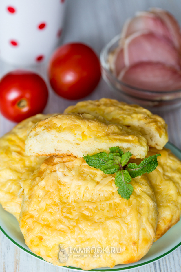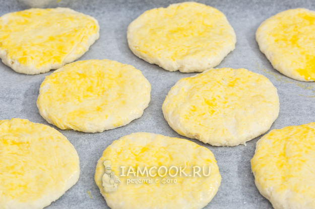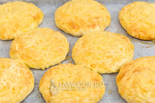 Лепешки из творожного теста с сыром готовы.