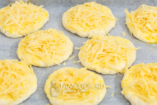 На заготовки выложите натертый сыр.