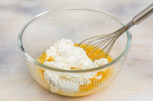 Добавьте творог. Перемешайте до однородности.