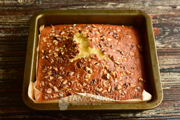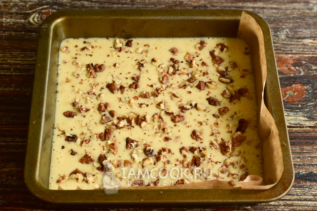 Сверху выложите грецкие орешки, которые предварительно немного измельчите.