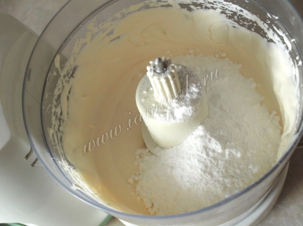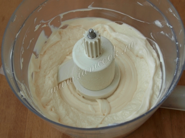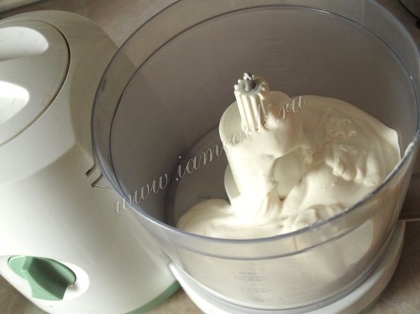 Сметану поместить в чашу комбайна и взбивать на малых оборотах.