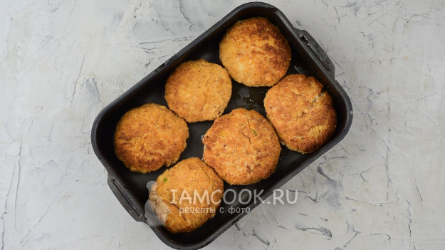 Обжаренные заготовки будущих зраз выложим на дно формы (я ничем не смазывала) и отправим запекаться в уже разогретую до 180 градусов духовку. Готовим куриные зразы с яйцом и луком в духовке 30-35 минут.