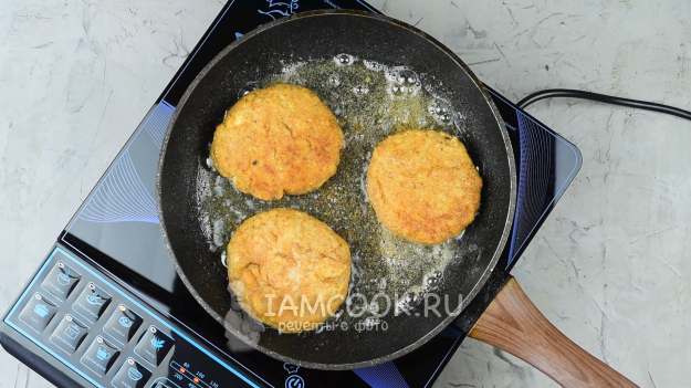 В сковороде на максимальном огне разогреем растительное масло и обжарим каждую заготовку с двух сторон до появления золотистой корочки.