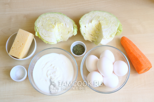 Ингредиенты для приготовления запеканки из белокочанной капусты с сыром в духовке готовы. Приступим!