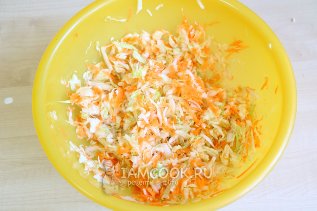 Выложите к капусте и перемешайте до однородности. Овощная масса готова.