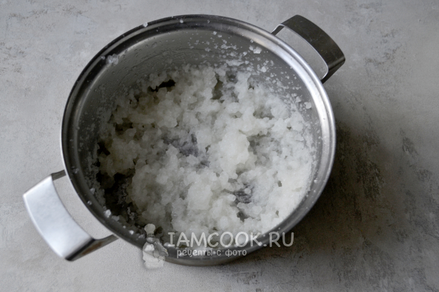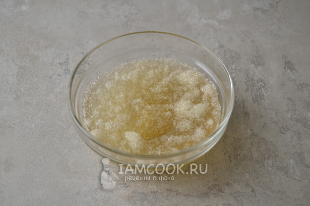 Желатин залейте холодной кипяченой водой и оставьте для набухания в соответствии с инструкцией на упаковке.