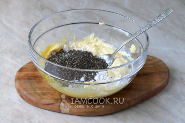 В творожную основу добавьте семена чиа и пару столовых ложек картофельного крахмала.