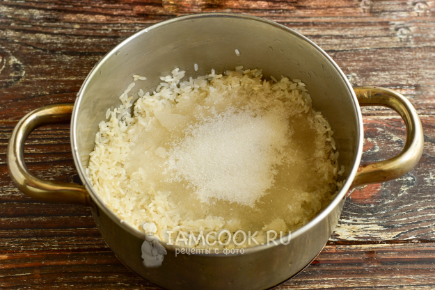 Возьмите ингредиенты для приготовления рисовой каши на топленом молоке.