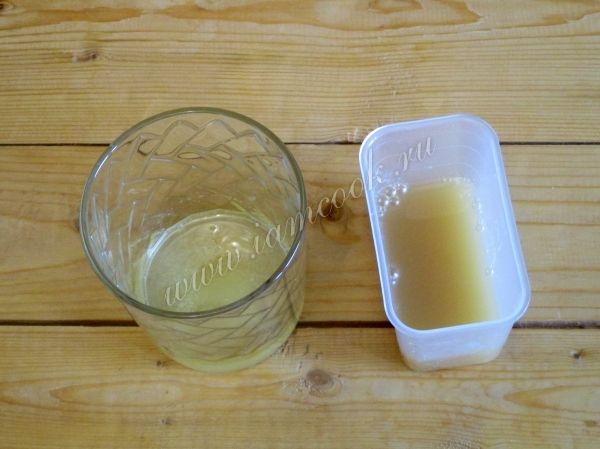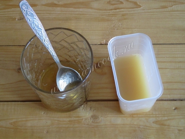 Отмерьте нужно количество сахарного сиропу или меду и грушевый сок.