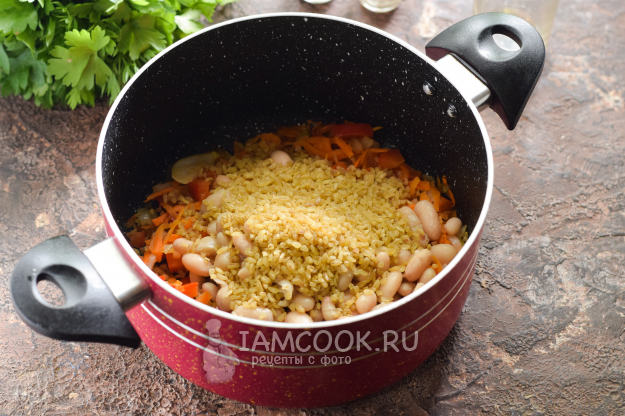 Подготовить все продукты для супа с фасолью и кукурузой. Вместо булгура вы можете взять рис, как вариант. Кукурузу можно использовать замороженную. Фасоль вы также можете накануне отварить, но мне нравится именно консервированная.