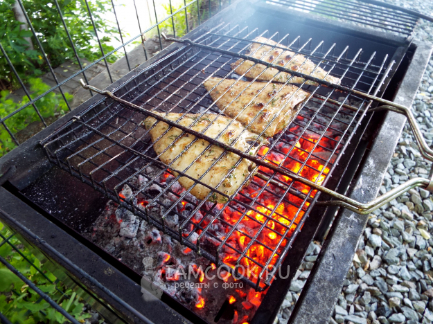 Камбала на мангале на решетке готова.