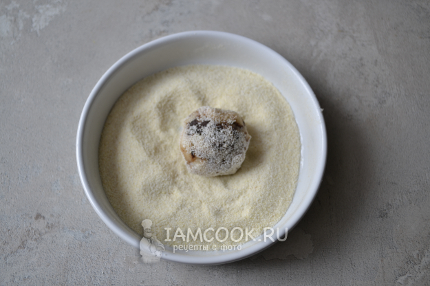Каждый шарик обваляйте в манной крупе со всех сторон.