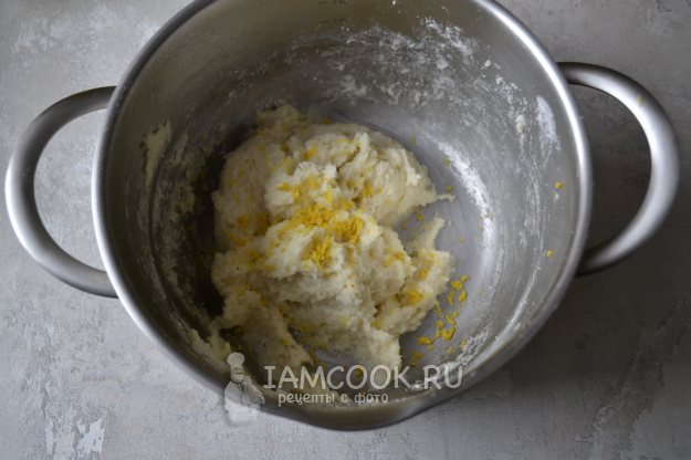 В половину теста добавьте натертую лимонную цедру и перемешайте.