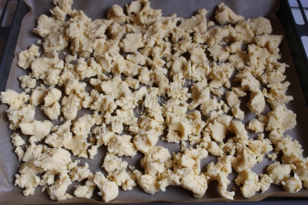Тесто рвем таким образом на кусочки, выкладываем на лист. Ставим в духовку на 20 минут при 180 градусах.