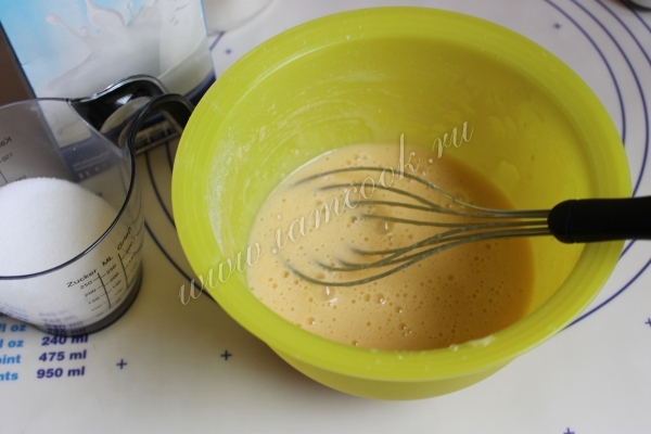 А пока варим крем. Яйца растираем с сахаром (сахар по вкусу, я брала стакан), добавляем муку и немного молока.