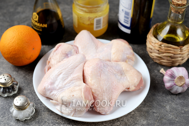 Возьмите все необходимые продукты для приготовления куриных крылышек в апельсиновом соусе. Крылья помойте и обсушите, также помойте под проточной водой апельсин.