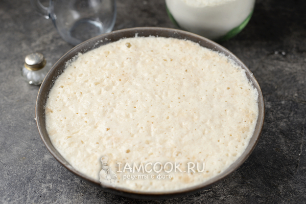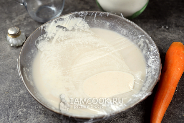 Накройте миску с тестом пищевой пленкой без доступа воздуха и отправьте в теплое место минут на 30 минимум.