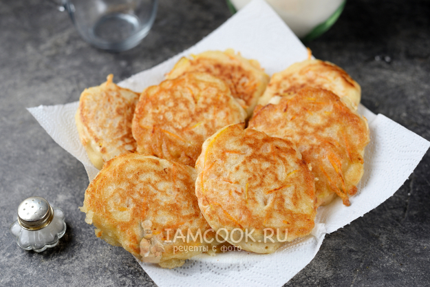 Выложите оладьи на бумажные полотенца, чтобы ушло лишнее масло.