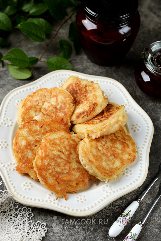 Постные морковные оладьи готовы - пышные, вкусные и сытные. Подавайте с вареньем или сладкими сиропами.